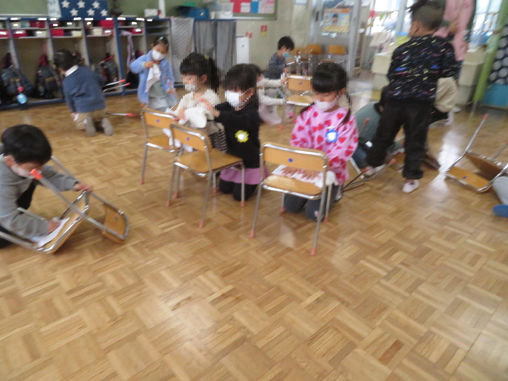 こちらはゆり組で掃除を行った、きく・ゆりチーム。机やいすをふきふき✨