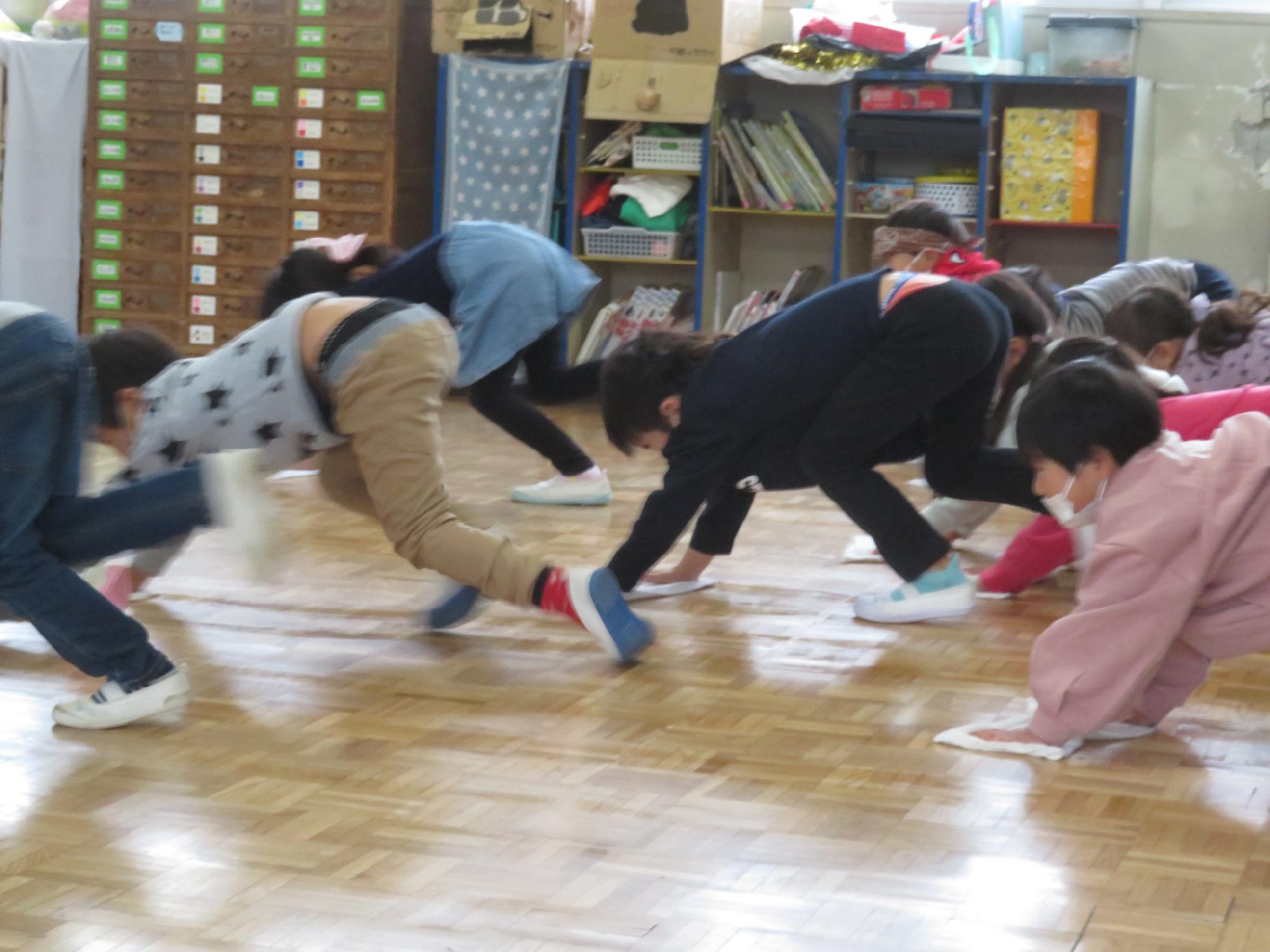 きく組で掃除をしていた、きく・ゆりチーム。床の雑巾がけもこの通り!!さすが徒歩登降園で足腰を鍛えているだけのことはあります。