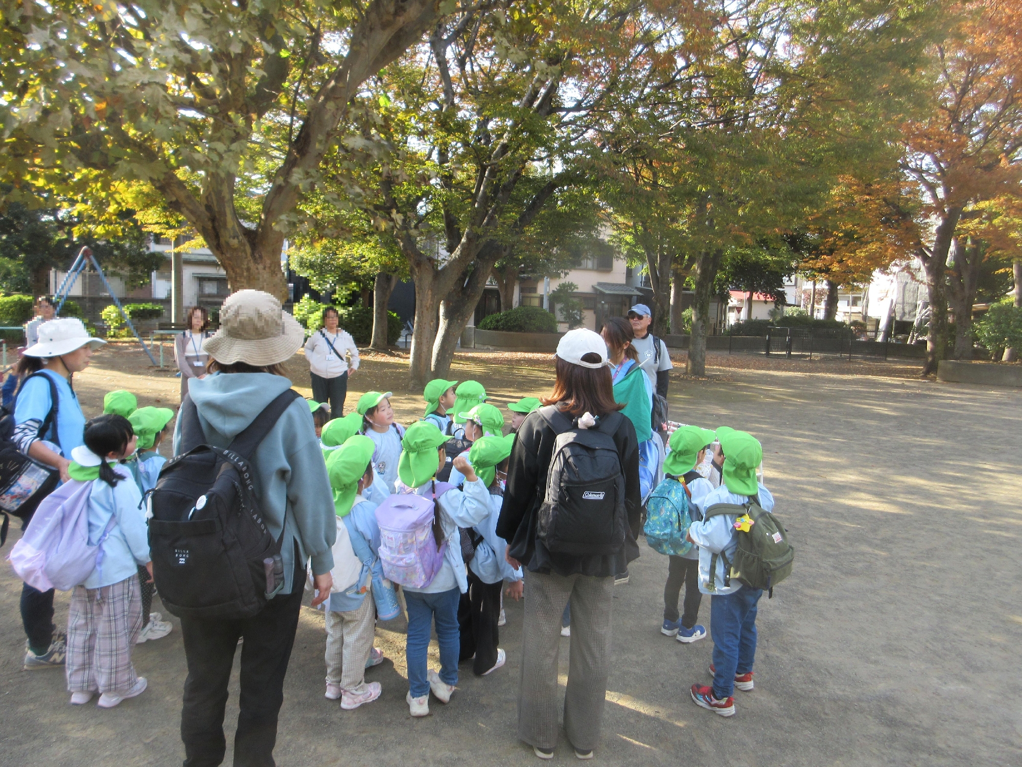 幼稚園の前の公園では、お留守番の年中少さんがお見送りをしてくれていました。