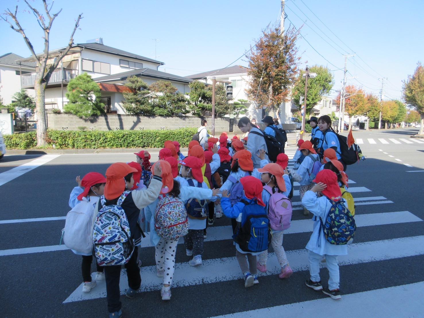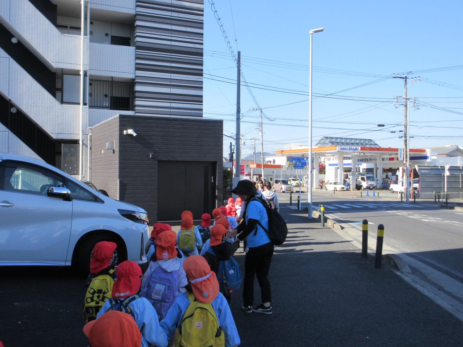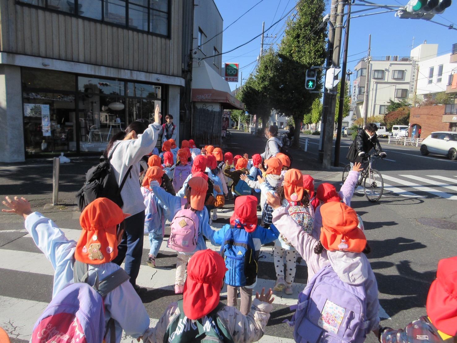 子どもたちが渡る横断歩道の中には、すぐ点滅してしまうものも…下見の際に、先生たちは何秒で信号が変わるのかもきちんとチェックしてくれているので安心😊
