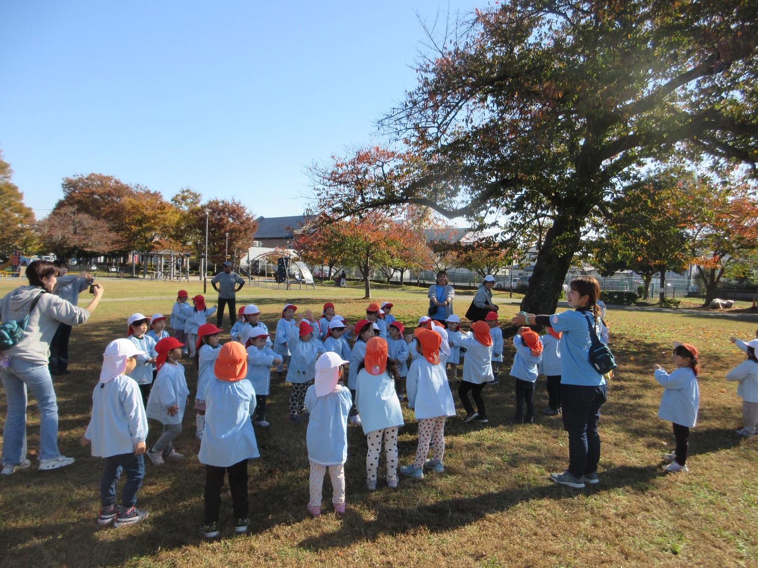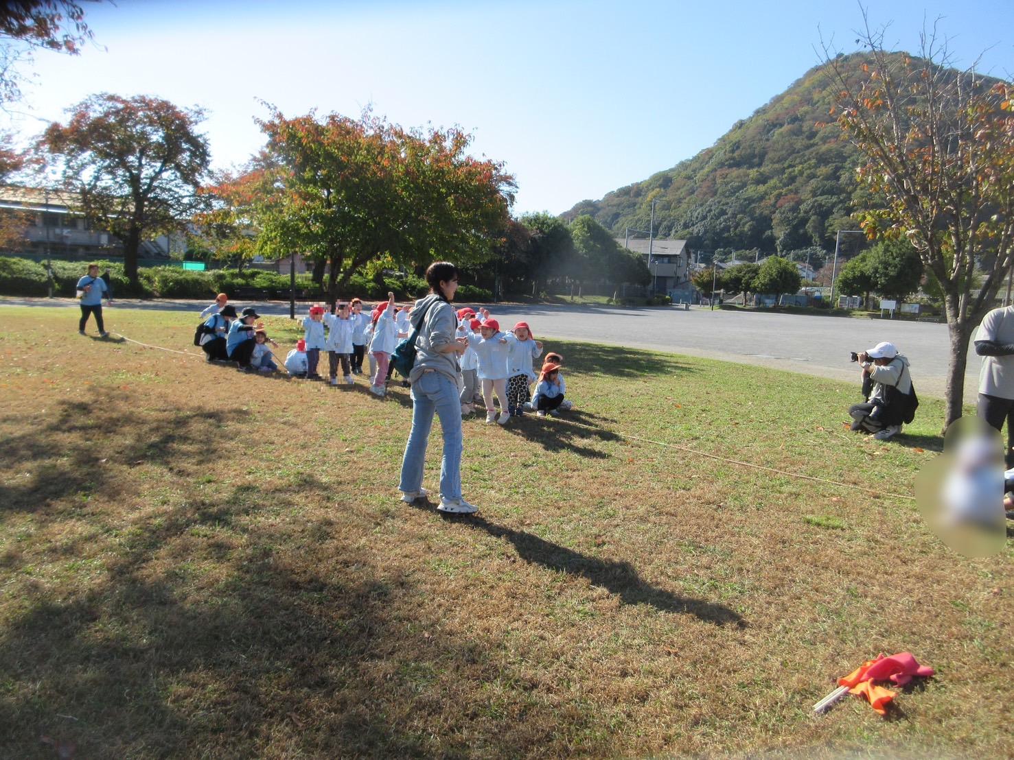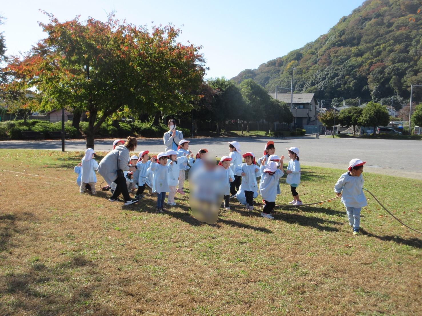 屋外であっても、みんなでまとまって行動がとれるようになった年少さんに成長を感じました。
