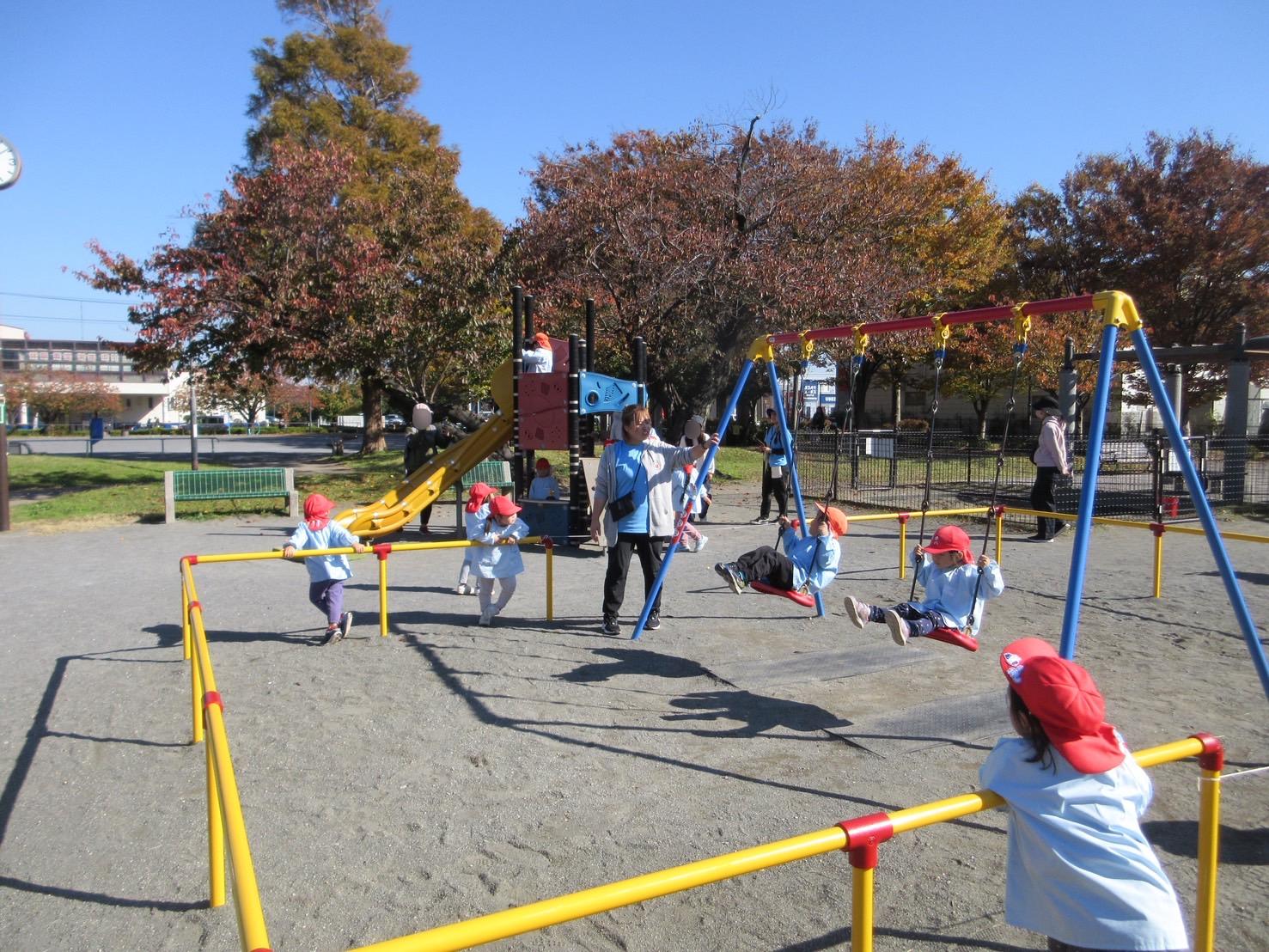 幼稚園とは違う遊具で遊んだり