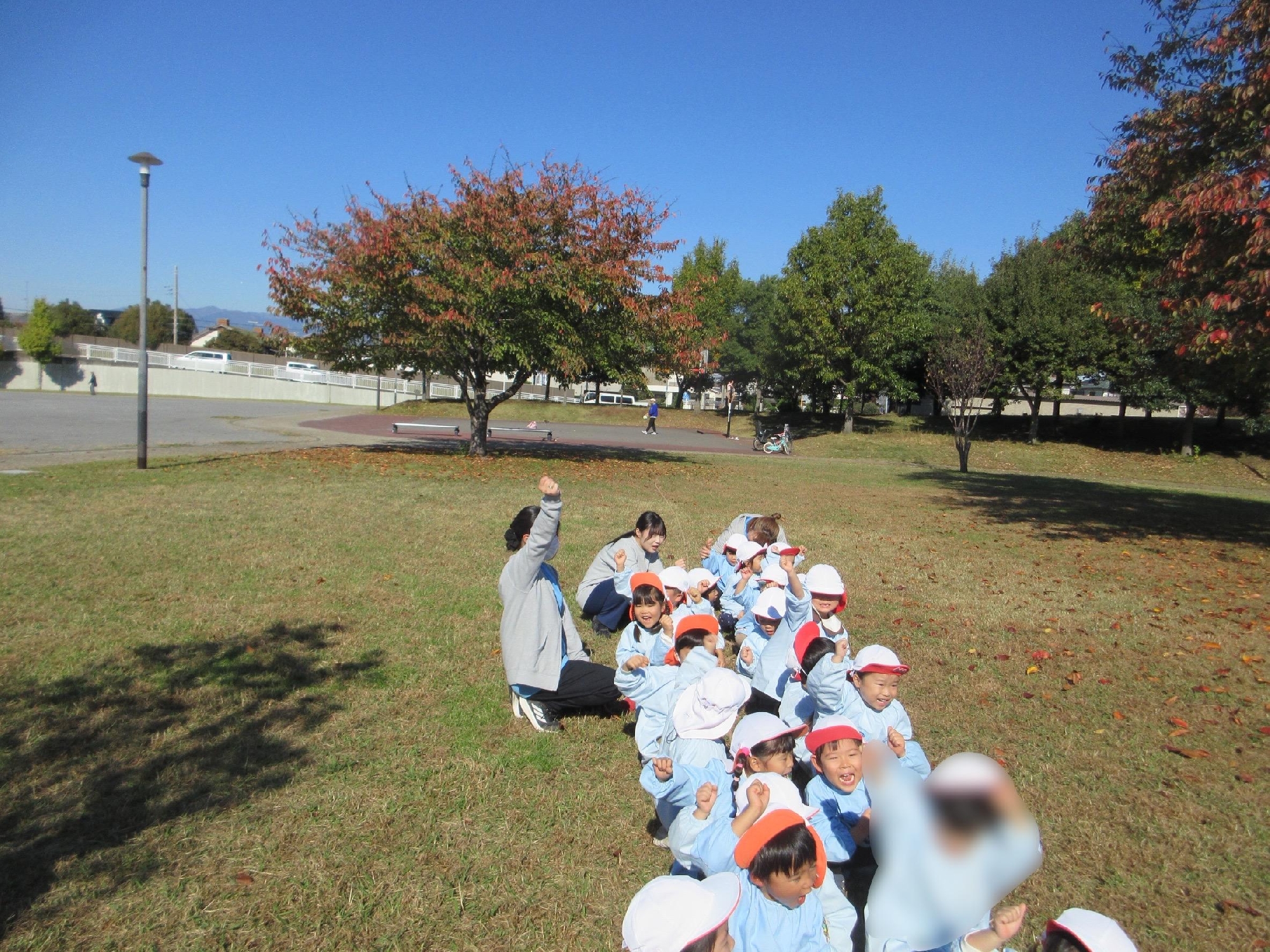 年中少さんだけで歩き切れるか、ちょっぴり不安で迎えた年中少組の秋の遠足でしたが、