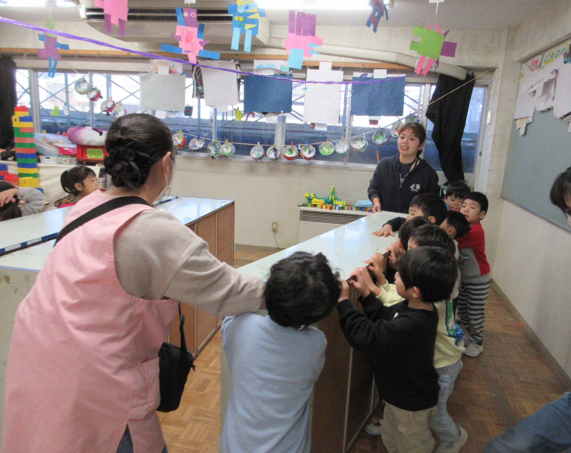 1階の保育室しか使用できない、園庭は仕切られていて狭い…制限が多い中ではありましたが、なでしこ幼稚園らしい温かい雰囲気の造形まつりとなりました。