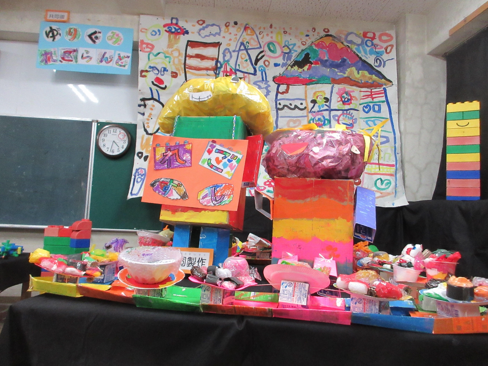 造形まつりが12月になったことで、例年3学期に行っているはさみで丸を切る活動を、2学期に前f倒しするなど、先生方の努力や工夫が詰まった空間になっていました。