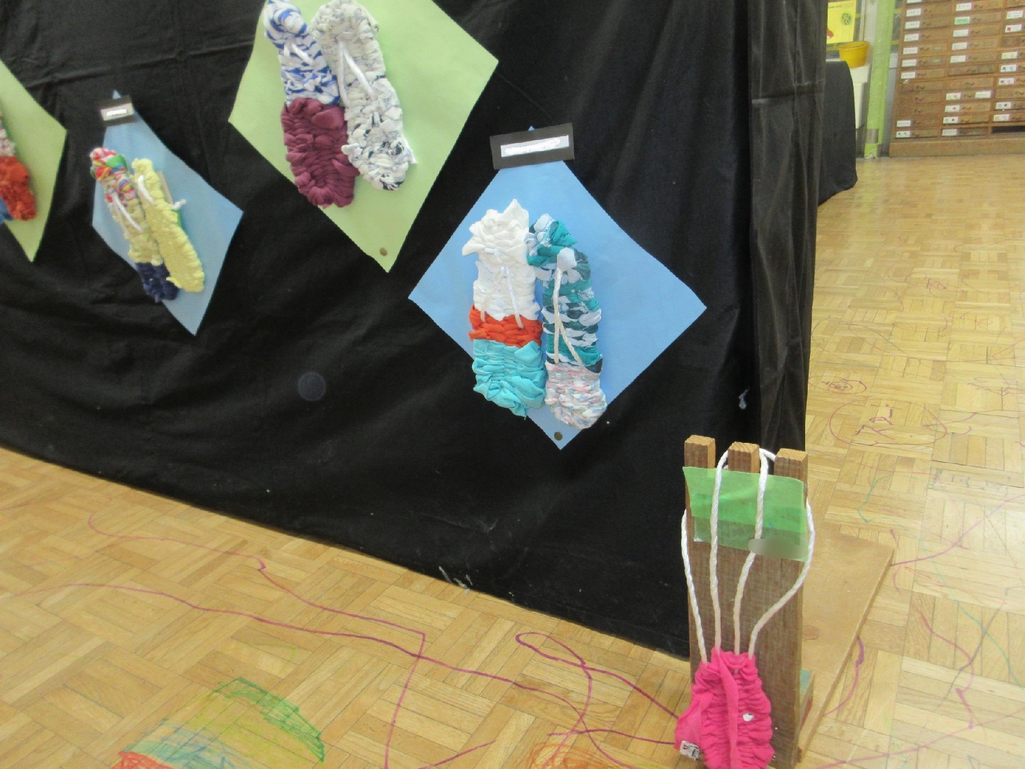 年長ならではの作品といえるのが、この「草履」実際に履くことができるこの草履は、着なくなったTシャツを裂いたひもで作られている、ISOの活動に取り組んでいるなでしこらしい作品です。